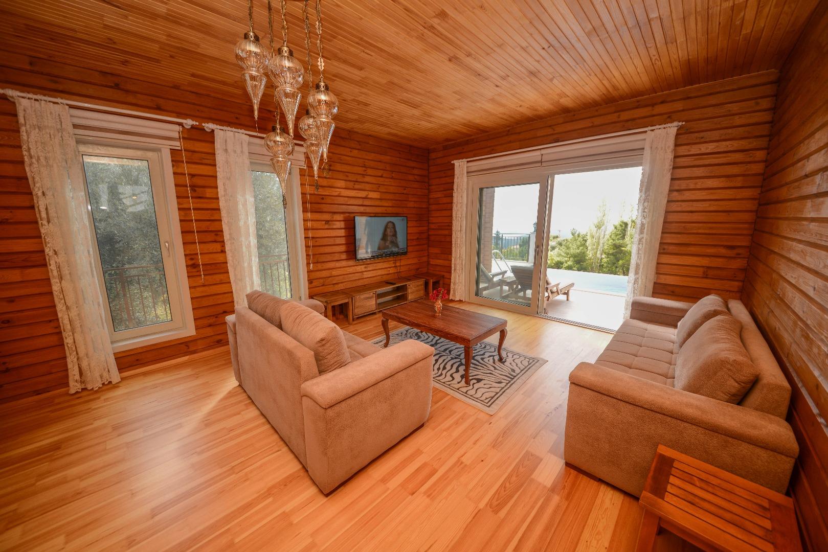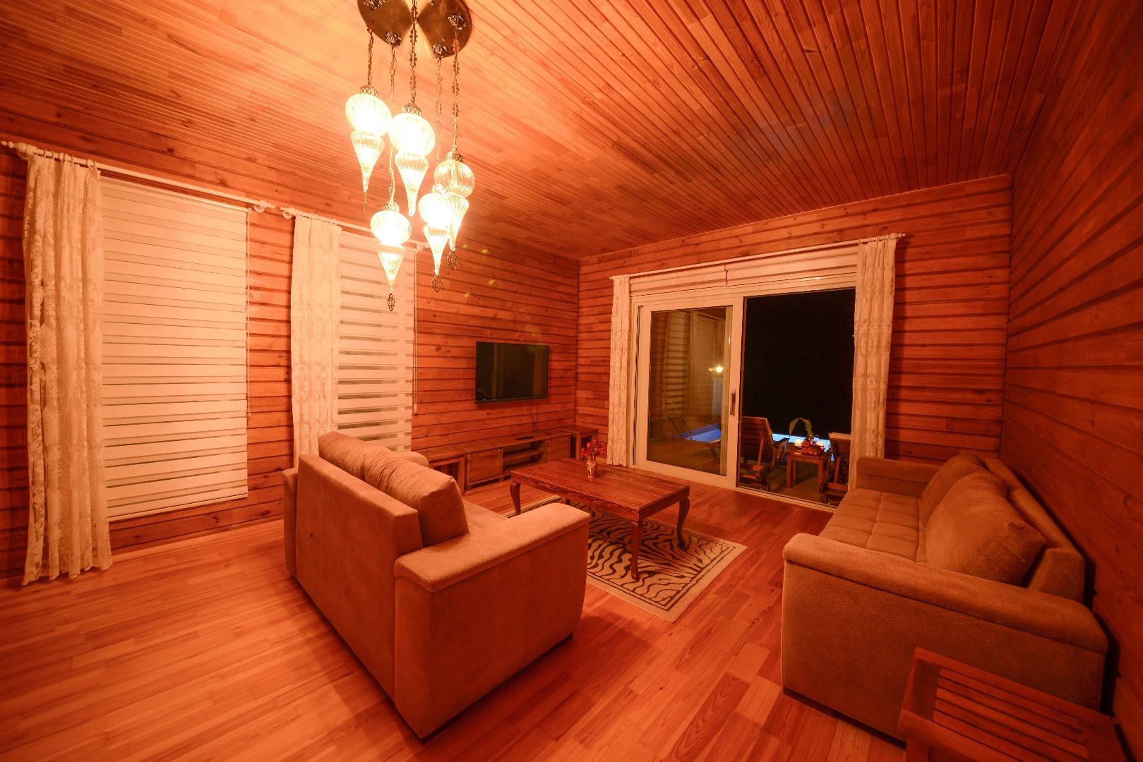 Salon : Salon içerisinde oturma grubu , Tv , klima , sehpa bulunmaktadır . Havuz terasına çıkış bulunmaktadır .