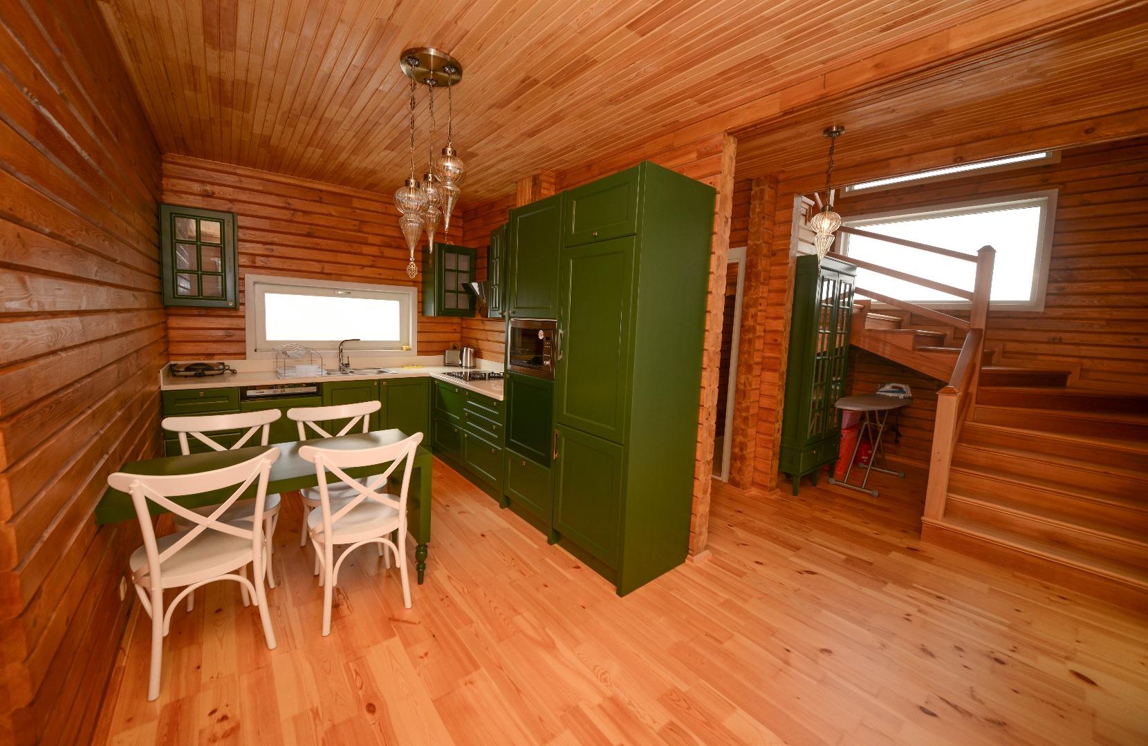 Mutfak ; Modern Amerikan mutfakta buzdolabı , bulaşık makinası , fırın , ocak , mikrodalga fırın , kettle , su sebili , ekmek kızartma makinası , yemek masası , yemek takımları , çatal ve bıçak takımları , tencere ve tava takımları , bardaklar bulunmaktadır .