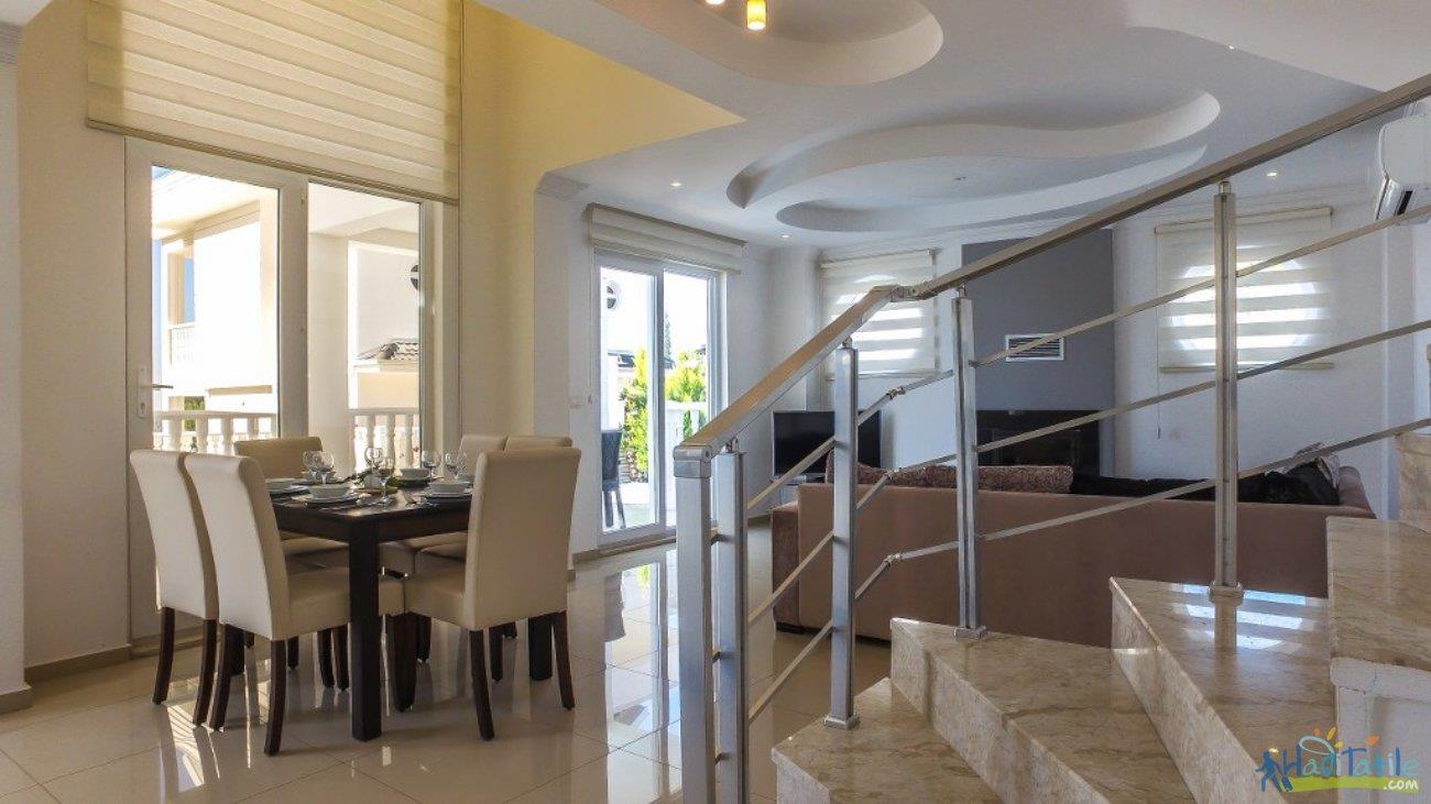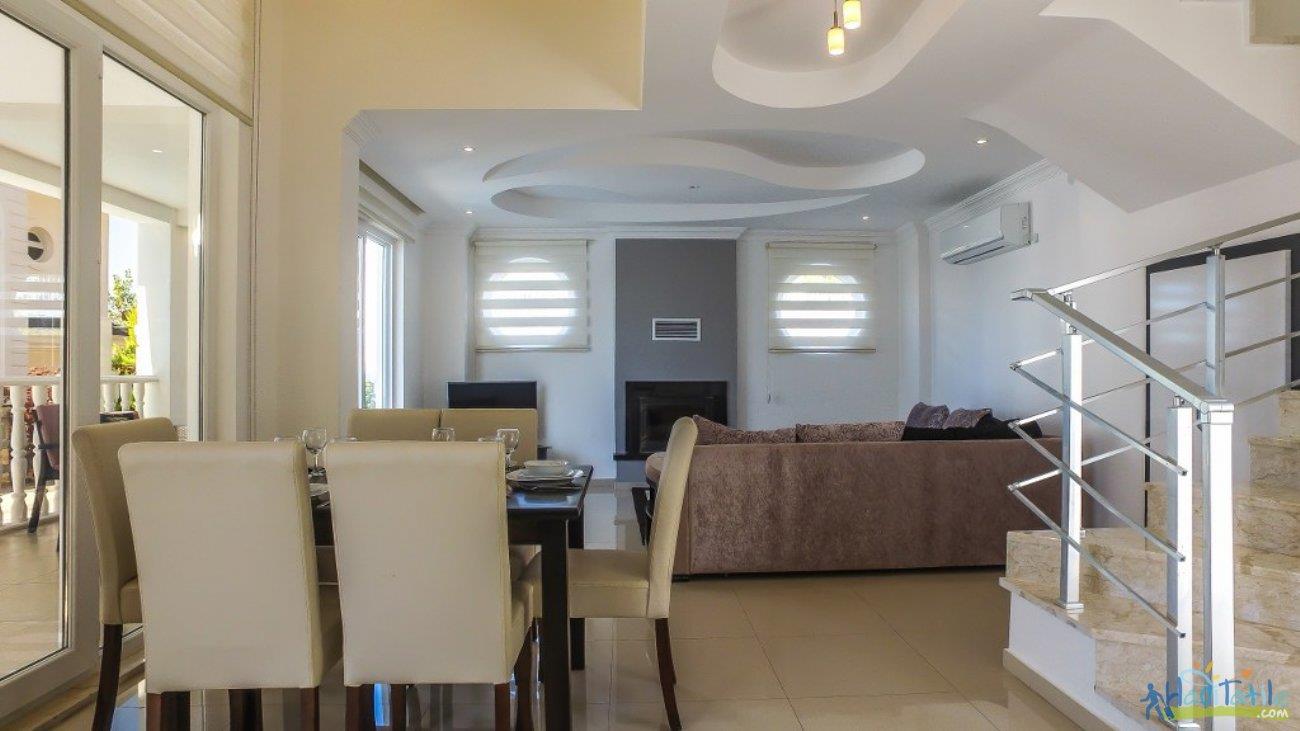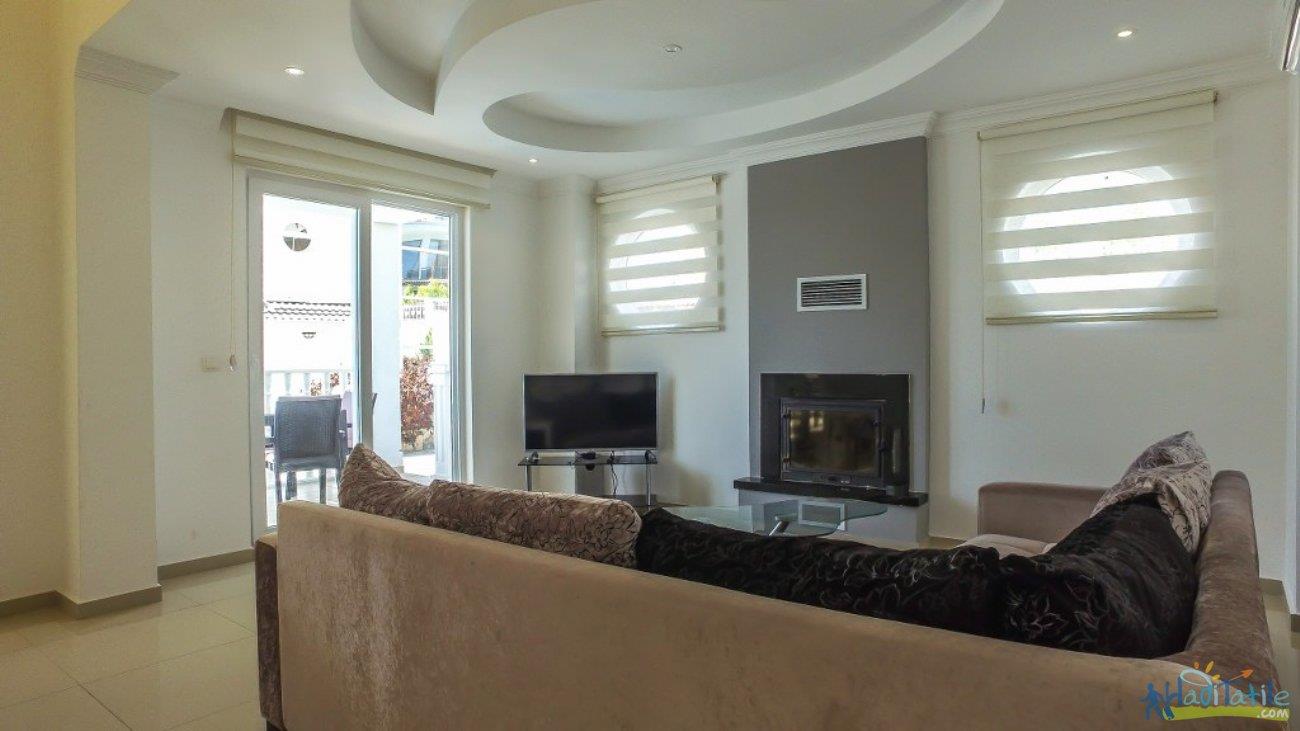 Salon: Şomine olup içerisinde oturma grubu, WC, uydu alıcı, LCDTV, DVD, klima, masa, sandalyeler, havuza çıkış bulunmaktadır.