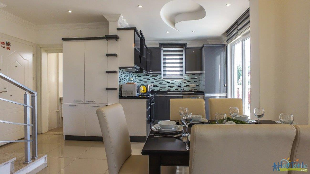 Mutfak: buzdolabı, fırın, mikrodalga,çamaşır makinası, bulaşık makinası, 4’lü ocak, elektrikli su ısıtıcısı (ketıl), ekmek kızartma makinesi, 8 kişilik yemek takımı, tava, tencereler, çatal ve bıçak takımı ve diğer mutfak malzemesi mevcuttur.