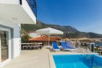 Havuz Terası (Bahçe): Villamızın havuz terasında, özel yüzme havuzu, şezlong, şemsiye, yemek masası ve barbekü (mangal) bulunmaktadır.