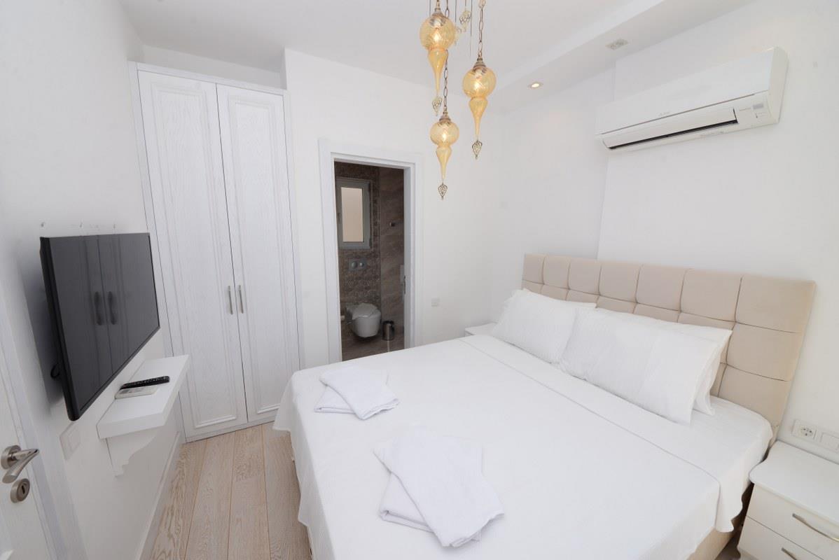 1. Yatak Odası : Suit oda, 1 adet çift kişilik yatak, klima, komodin, elbise dolabı, TV, banyo ve tuvalet bulunmaktadır.