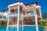 Mükemmel konumunun kazandırdığı benzersizliğiyle, huzur ve zenginliği bir arada görmek isteyen misafirlerini cezbetmektedir. Veranda kapısından ve pencerelerden salonuna güneş dolan bu lüks villamızda herbirinin kendi banyosu olan 4 adet suit tarzı yatak odası mevcuttur. Büyük veranda, BBQ alanı